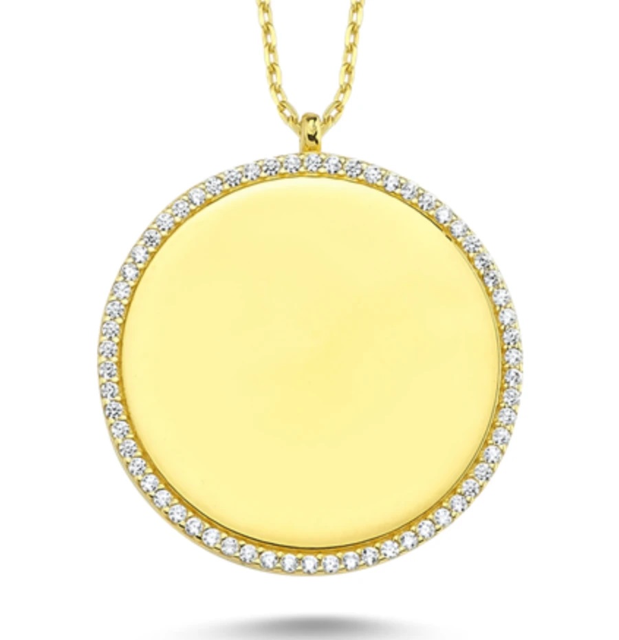 Diese hochwertige Silberkette in edler Goldveredelung überzeugt durch ihr klares, modernes Design und ihre exzellente Verarbeitung. Der runde Anhänger wird von einem fein gearbeiteten Pavé-Rand aus funkelnden Zirkonia-Steinen umrahmt, die dem Schmuckstück eine dezente, luxuriöse Brillanz verleihen.